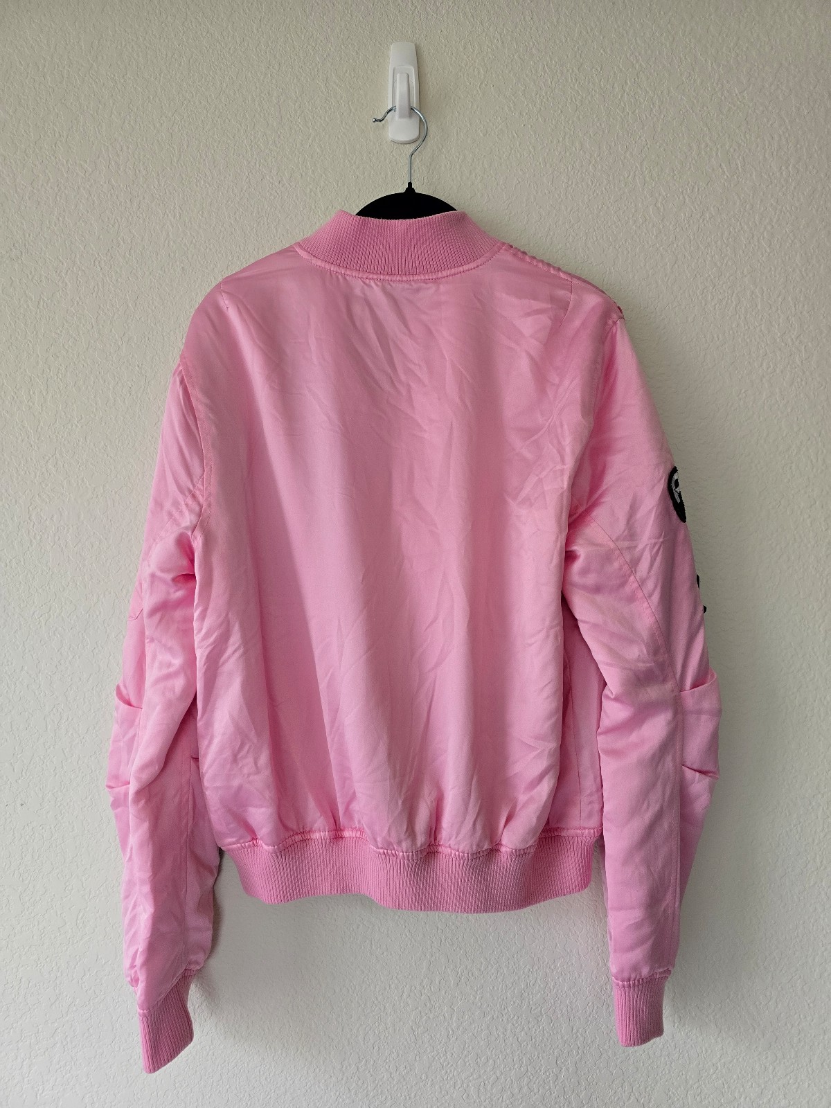 Trade in your mech for this dope bomber jacket! This bright pink bomber calls D.Va's high powered mech to mind and features a slew of D.Va themed patches. The interior is in a matching pink with an allover bunnyhead print. Suiting up!